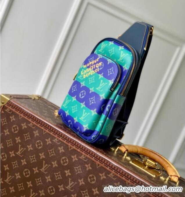 Promotional Louis Vuitton Mens Avenue Slingbag PM Bag in Blue Stripes Monogram Heritage Canvas M26419 2025