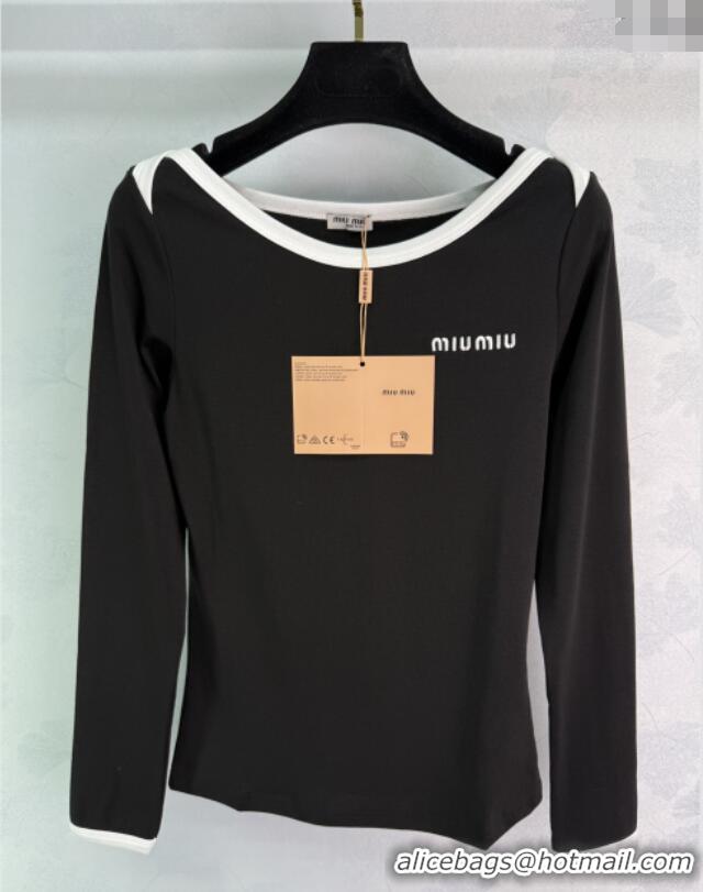 Good Product Miu Miu Cotton Long Sleeve T-Shirt M110503 Black 2025