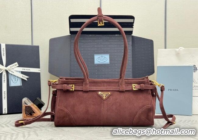 Promotional Prada Bonnie Medium Suede handbag 1BA426 Burgundy 2025