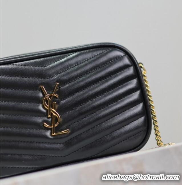 Top Grade Saint Laurent Lou Mini Chain Camera Bag in Matelasse Leather 585040 Black/Gold 2025