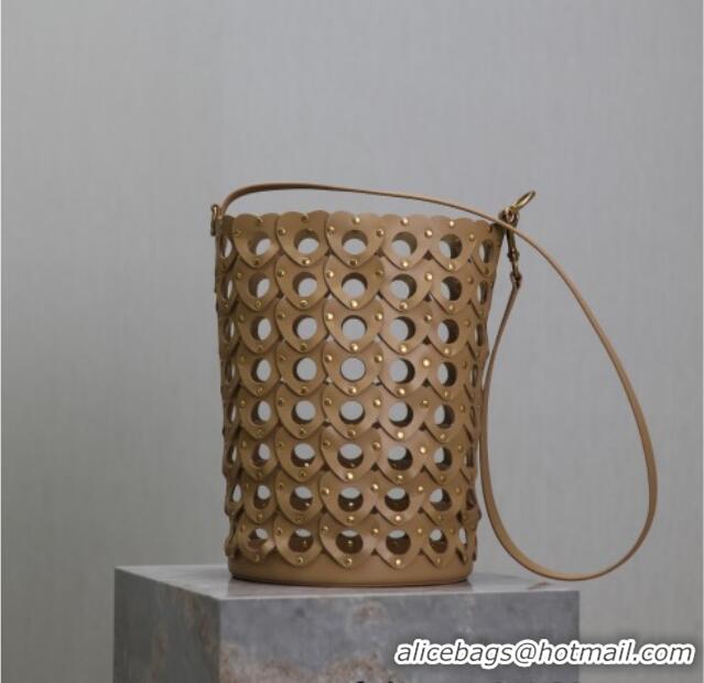 Promotional Saint Laurent Seau Bucket Bag in Heart Cutout Leather with Studs 753827 Brown 2025