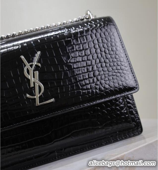 Trendy Design Saint Laurent Sunset Medium Bag in Crocodile Embossed Leather 442906 Black/Silver 2025