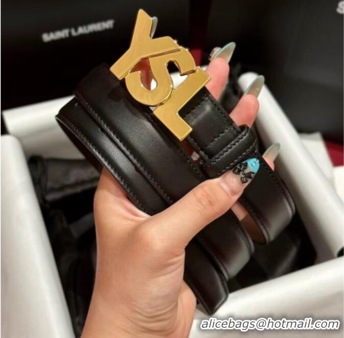 Promotional Saint Laurent Women's Supple Calfskin Leather Belt 2.5cm with Maxi YSL Buckle 25060 Black/Shiny Gold 2025