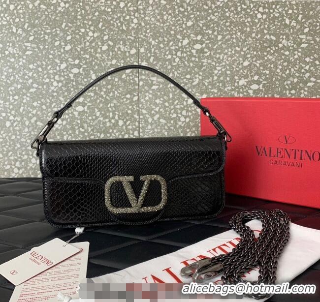Promotional Valentino Loco Medium Shoulder Bag in Snakeskin Embossed Leather with Strass VLTN6030 Black 2024