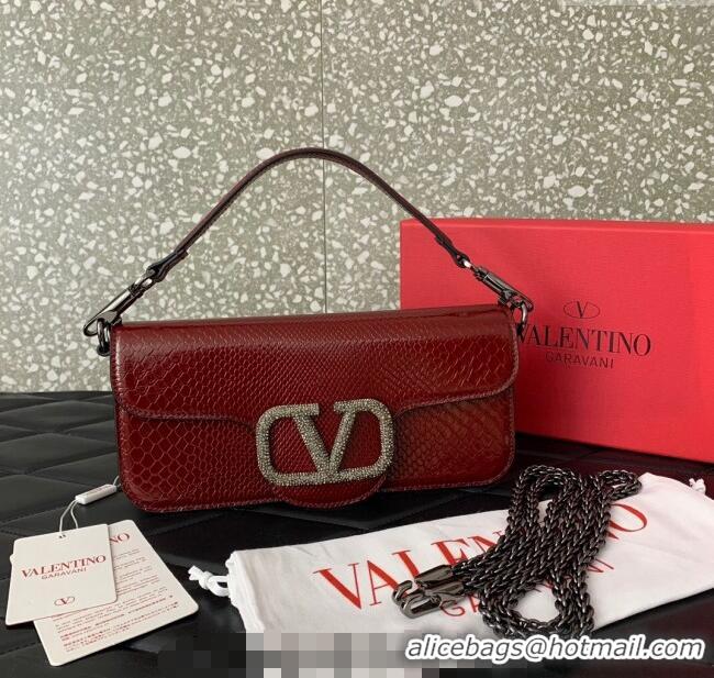 New Fashion Valentino Loco Medium Shoulder Bag in Snakeskin Embossed Leather with Strass VLTN6030 Dark Red 2024