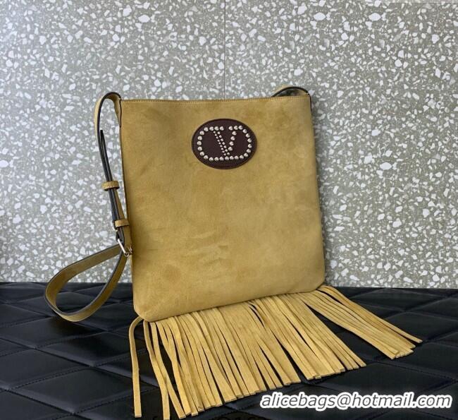 Promotional Valentino Nellcôte Shoulder Bag in Suede with Stud VLogo Signature and Fringes Tassel 2026 Khaki 2025