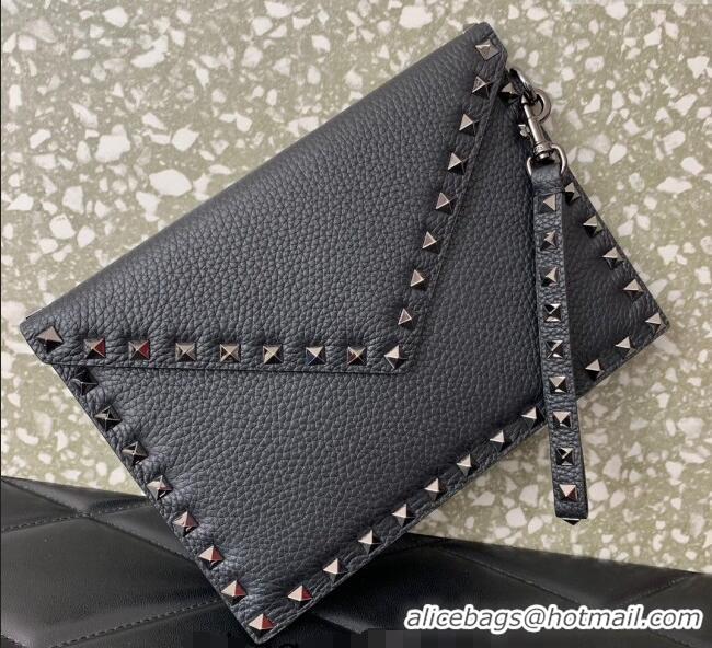 Best Price Valentino Rockstud Grainy Calfskin pouch VLTN053 Black/Gunmetal 2024