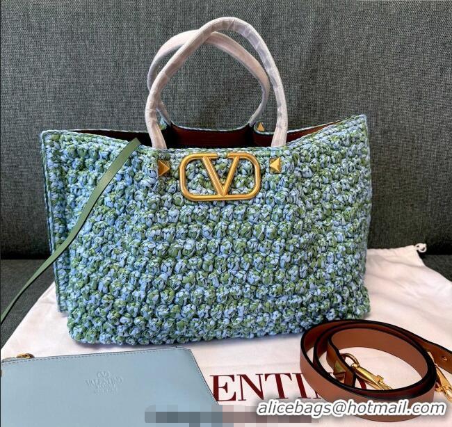 Promotional Valentino Viva Superstar Crochet Medium Shopping Bag 22002L Green/Blue 2025