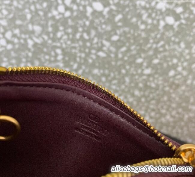 Famous Brand Valentino Vlogo Signature Grainy Calfskin Key Ring Pouch VLTN038 Burgundy 2025