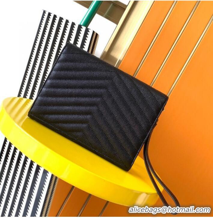 > Yves Saint Laurent Bag > Promotional Yves Saint Laurent MONOGRAM CLUTCH IN QUILTED GRAIN DE POUDRE EMBOSSED LEATHER A617662 black