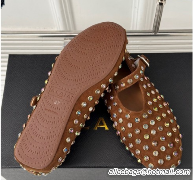 Purchase Alaia Ballet Flat in Suede with Strass Brown 1223029