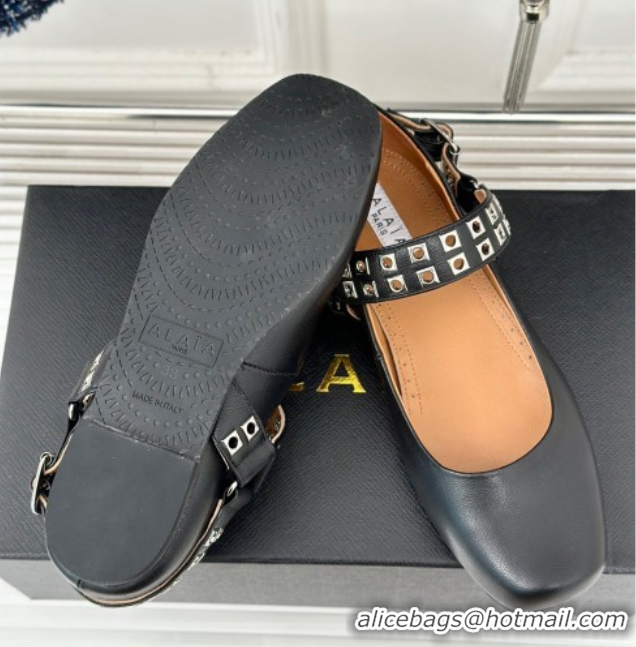 Purchase Alaia Ballet Flats with Eyelet Studs and Buckle in Calfskin Black AL100807 1008033