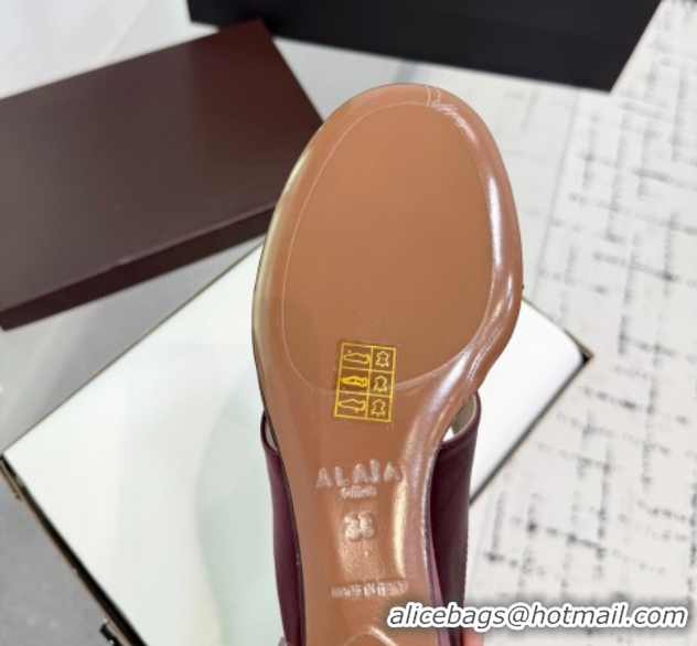 Sumptuous Alaia Cube Wedge Thong Slides Sandal 7.5cm in Satin Burgundy 0709007