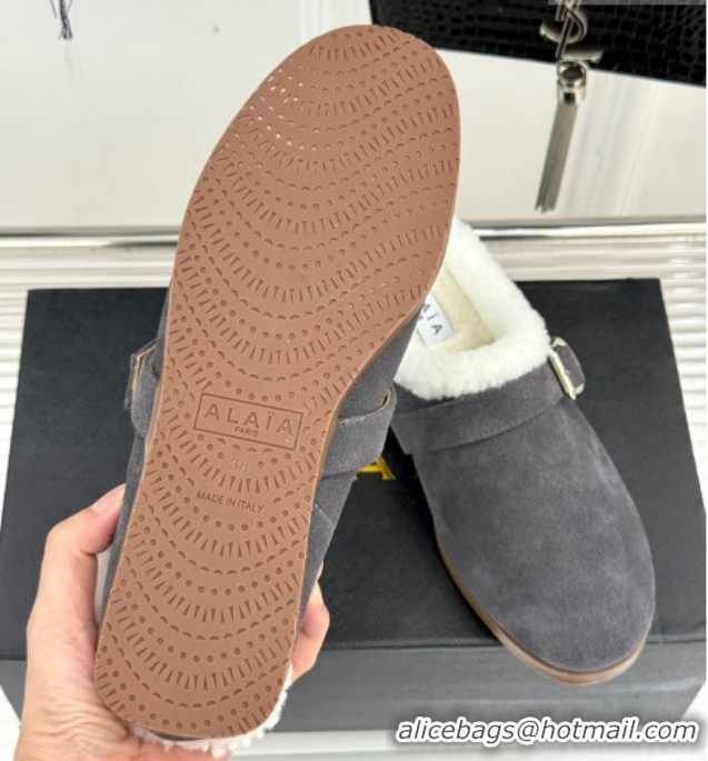 Purchase Alaia Suede and Wool Flat Mules with Buckle Dark Grey 2026 AL102912 1029154