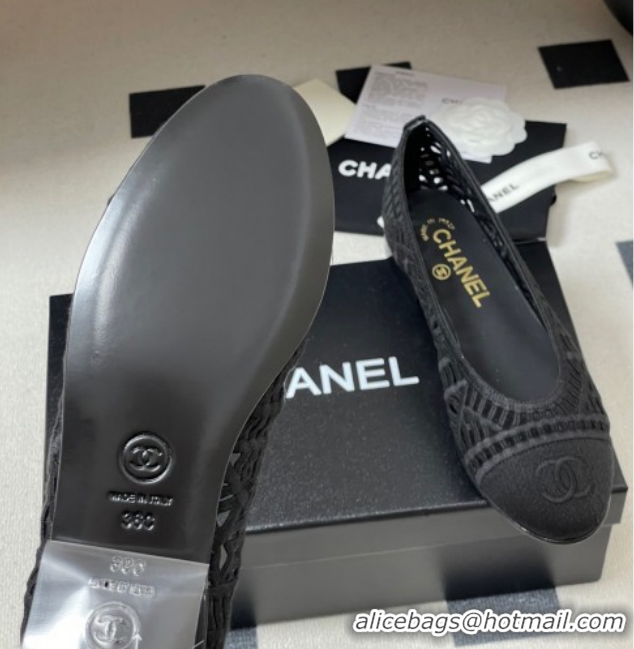 Purchase Chanel Embroidered Cotton Ballet Flats G46984 Black 2026