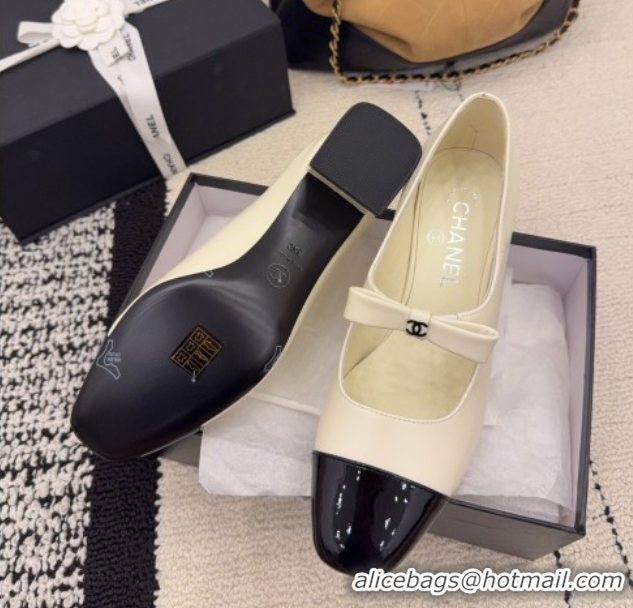 > Shoes Plaza > Chanel Shoes > Purchase Chanel Lambskin and Patent Leather Mary Janes Pumps 5cm with Bow White 2025 CH110302 1103104