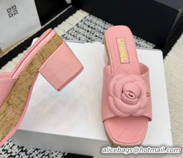 Your Position: Home > Shoes Plaza > Chanel Shoes > Purchase Chanel Patent Leather Heel Slides Sandal with Camellia CH030616 Pink 2026