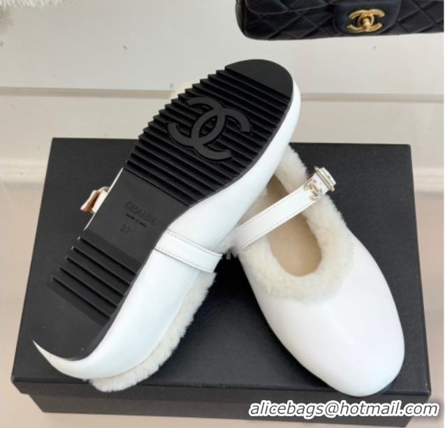 > Shoes Plaza > Chanel Shoes > Luxurious Chanel Calfskin Leather and Wool Mary Janes Ballet Flats White 2025 CH110304 1103075