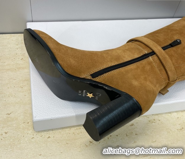 Best Product Dior D-Town Heeled High Heeled Boots 8cm in Suede with Buckle Tobacco Brown 1216135