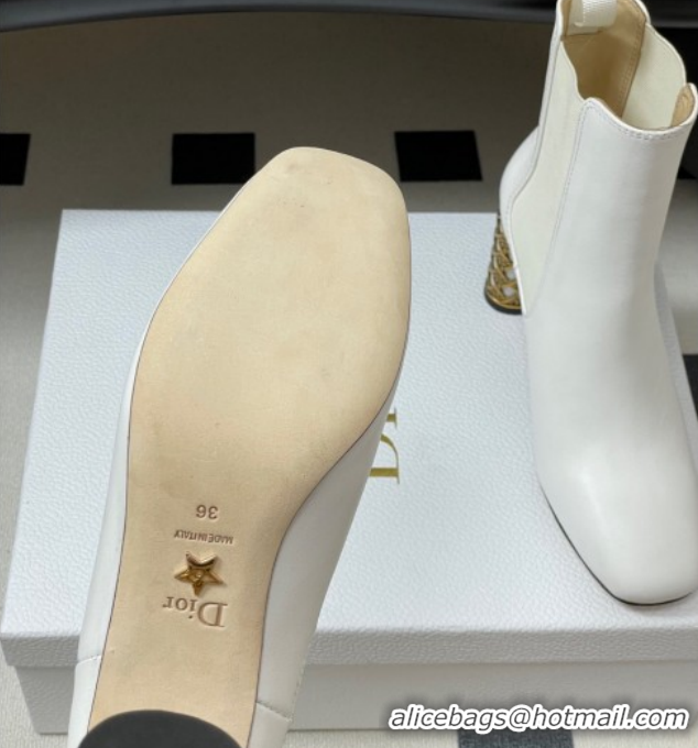 Pretty Style Dior Icon Ankle Boots 8cm Cannage Metal-Tone Heel in Calfskin Leather White 1029049