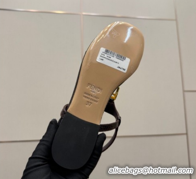 Purchase Fendi Delfina Flat Thong Sandals in Embossed Leather FE030201 Dark Brown 2026