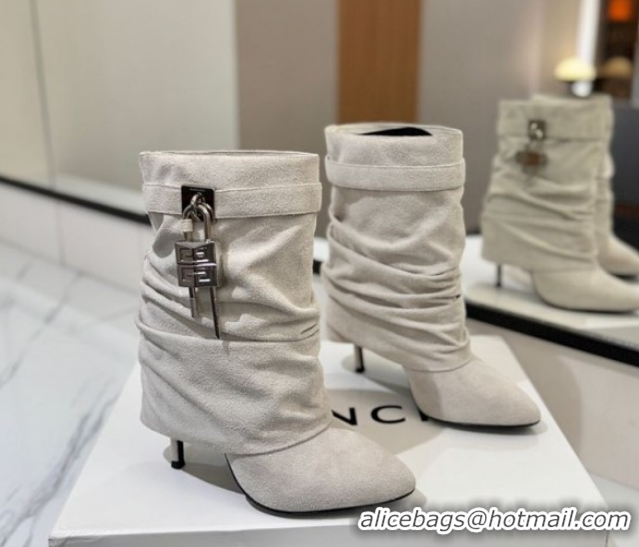 Purchase Givenchy Shark Lock Heel Ankle Boots 10.5cm in Suede Grey 1210037