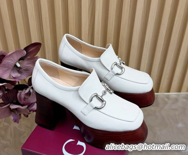 Purchase Gucci Calf Leather Platform Pumps 9cm with Horsebit GG121804 White 2026