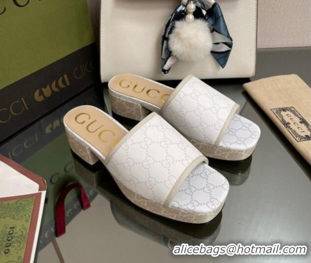 Purchase Gucci GG Canvas Heel Platform Slide Sandals White 090882