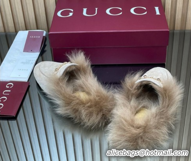 Sumptuous Gucci Jordaan GG Suede and Wool Flat Slippers with Horsebit Pale Grey 2025 GG102003 1020057