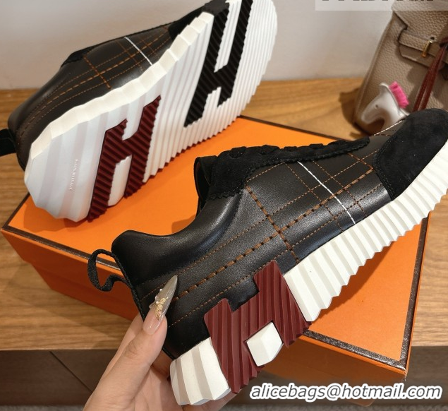 Pretty Style Hermes Bouncing Sneakers in Embroidered Leather and Suede Black 1222046 2026
