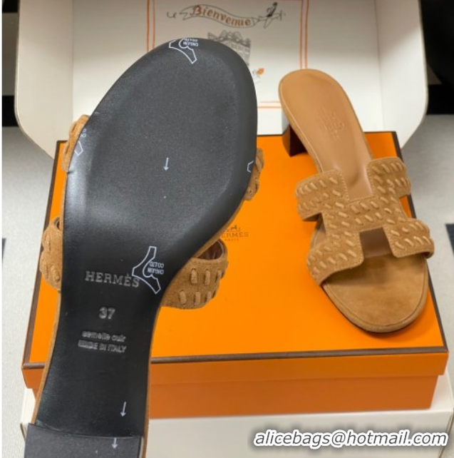 Purchase Hermes Classic Oasis Heel Slides Sandal 4.5cm in Braided Suede Brown 1023092