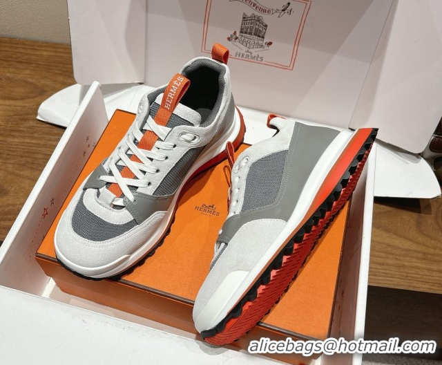Best Grade Hermes Leader Sneakers in Suede and Mesh Grey 1023032