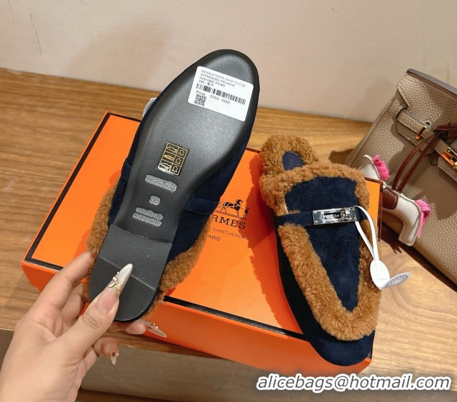 > Shoes Plaza > Hermes Shoes > Unique Style Hermes Oz Flat Loafers in Suede and Shearling with Kelly Buckle Black/Brown 1023014