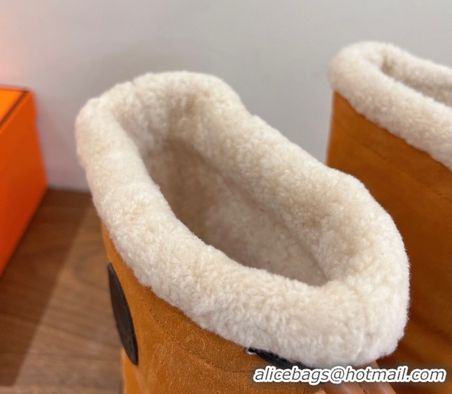 Perfect Hermes Suede and Shearling Platform Ankle Boots Brown Yellow HS122201 2026