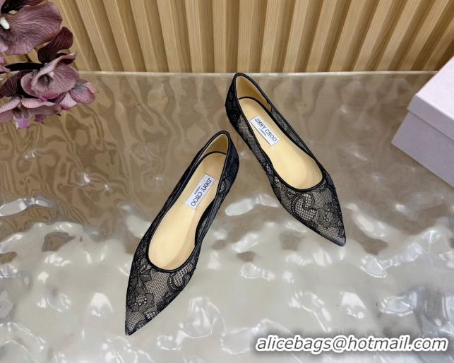 Best Grade Jimmy Choo Romy Ballerinas Flat in Lace Mesh Black 1210100