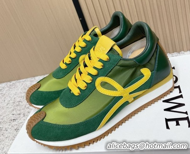 Purchase Loewe Flow Runner Sneakers in Nylon and Suede Green/Yellow 0226061