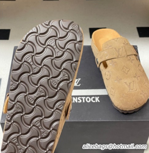 Good Quality Louis Vuitton LV Cosy Flat Comfort Clog Mules with Buckle Strap in Monogram Suede Brown 1022114