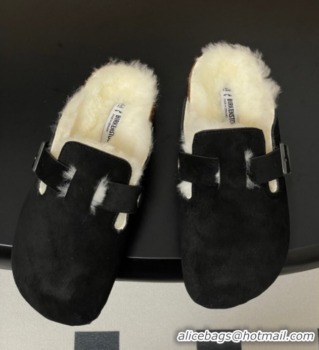 Your Position: Home > Shoes Plaza > Louis Vuitton Shoes > Purchase Louis Vuitton x Birkenstock Flat Mules with Buckle Strap in Suede and Wool Black 1022115