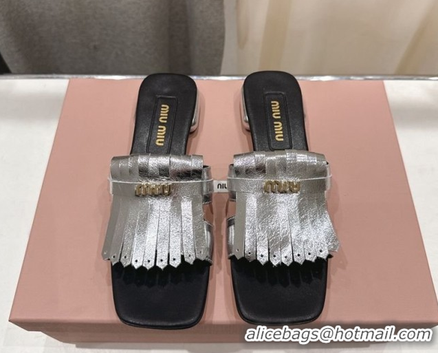 Purchase Miu Miu Fringe Leather Flat Slides Sandal MM022703 Silver 2026