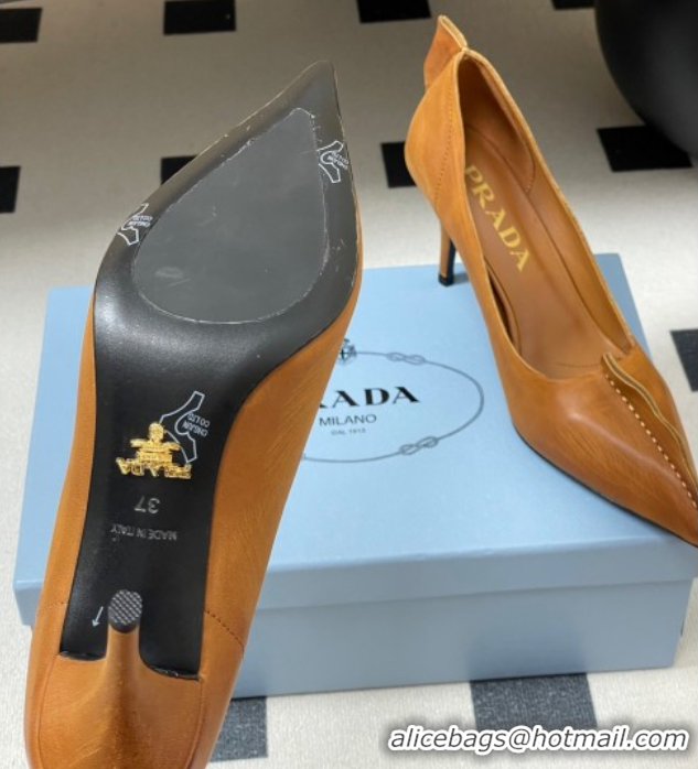 Purchase Prada Antiqued leather pumps 8.5cm with edges Brown 2025 1I194O 1027128