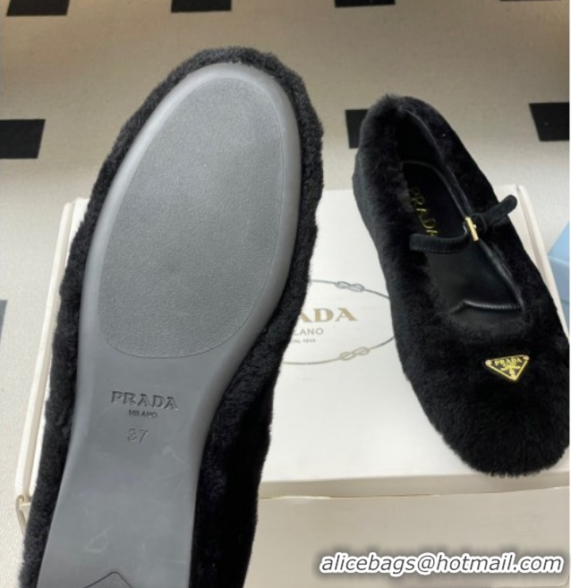 Stylish Prada Shearling ballerinas flat Black 2025 1F159O 1027098