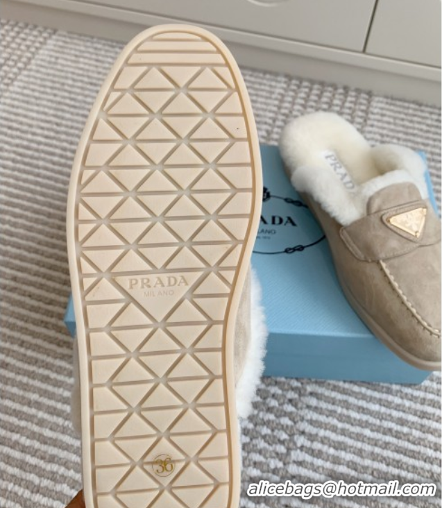 Stylish Prada Suede and Shearling Mules P112001 Beige 2025 (Women and Men)