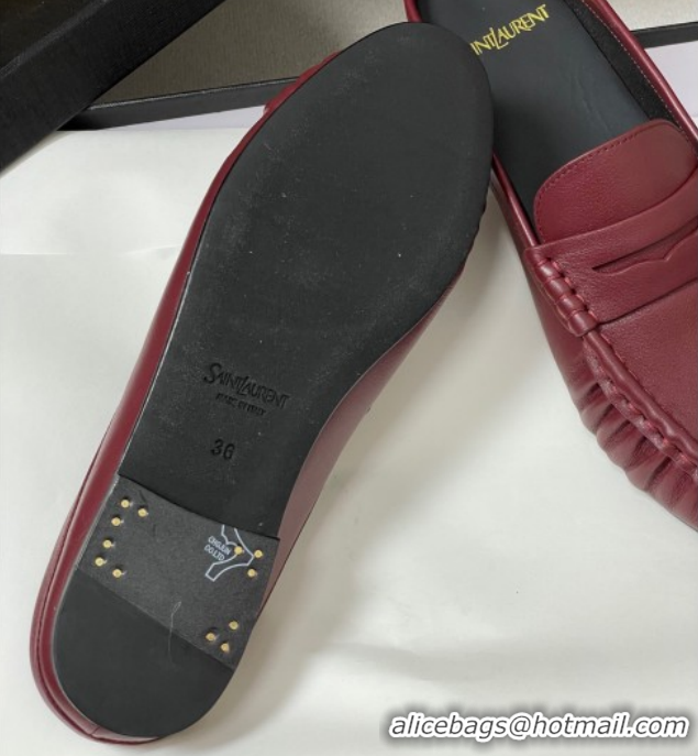 Grade Saint Laurent Le Loafer Mules in Calf Leather Red 1215020