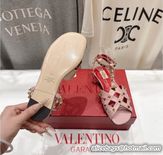 Best Grade Valentino Studdy Flat Sandals in Calfskin Leather Pink 0224041