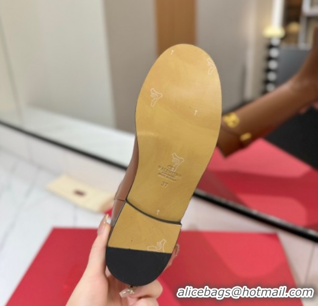 Purchase Valentino VLogo Signature Flat High Boots with Buckle Strap in Calfskin Brown VA082101