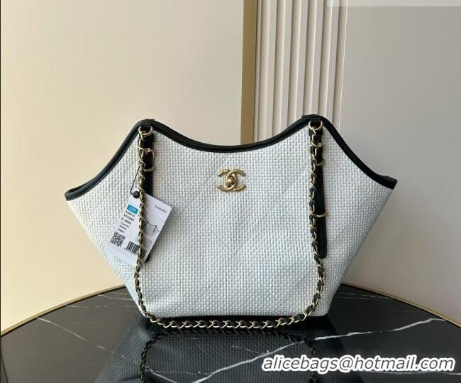 Discount Design Chanel Braided Straw Small Shopping Tote Bag AS6015 White 2026