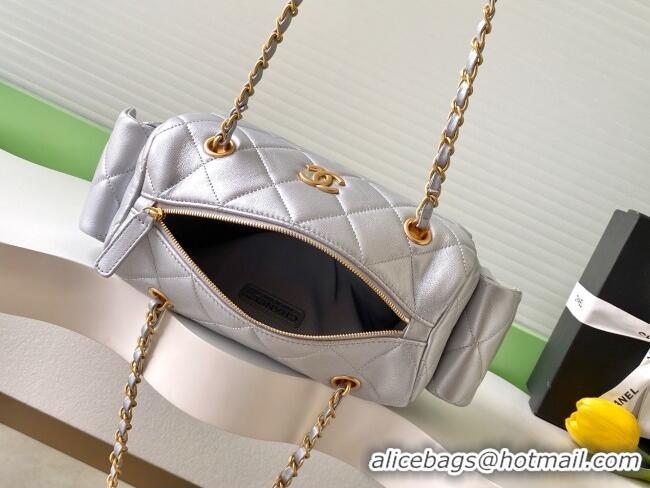 Most Popular Chanel Small Calfskin Leather Bowling Bag AS5792 Silver 2025