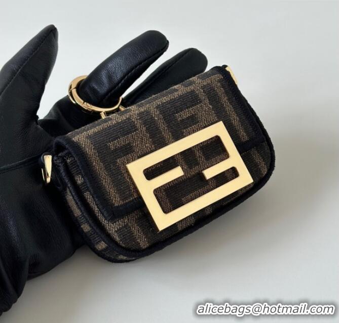 Reasonable Price Fendi Nano Baguette Charm in Brown FF jacquard fabric 8567E 2025