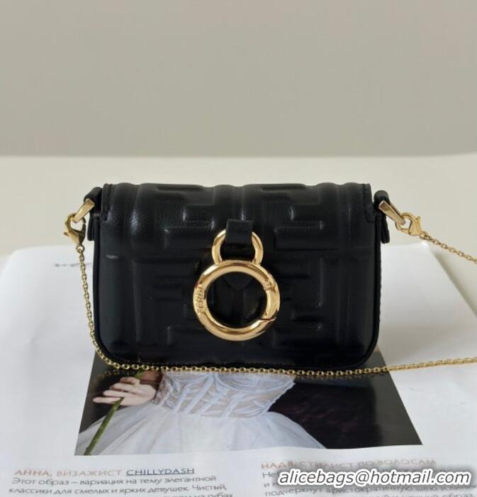 Trendy Design Fendi Nano Baguette Charm in FF Leather 8567 Black 2025