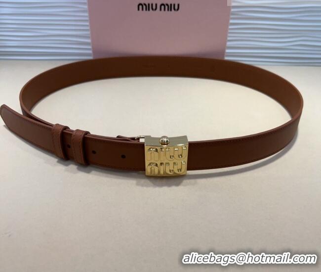 Reasonable Price Miu Miu Calfskin Belt 3cm with Logo Band Buckle MM102201 Brown/Gold 2024